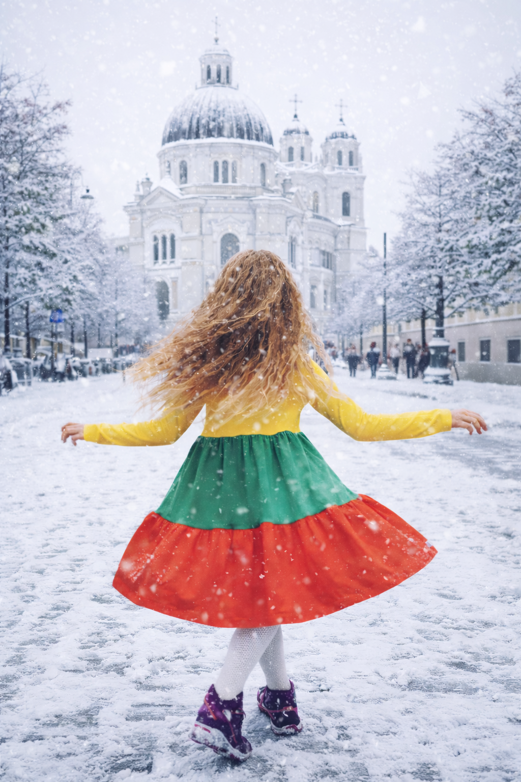 Dydis nustatomas pagal ūgį. Dydžiai grupuoti, rankovės siauresnės, todėl užraitojus jas suknelė tiks ir kitais metais.