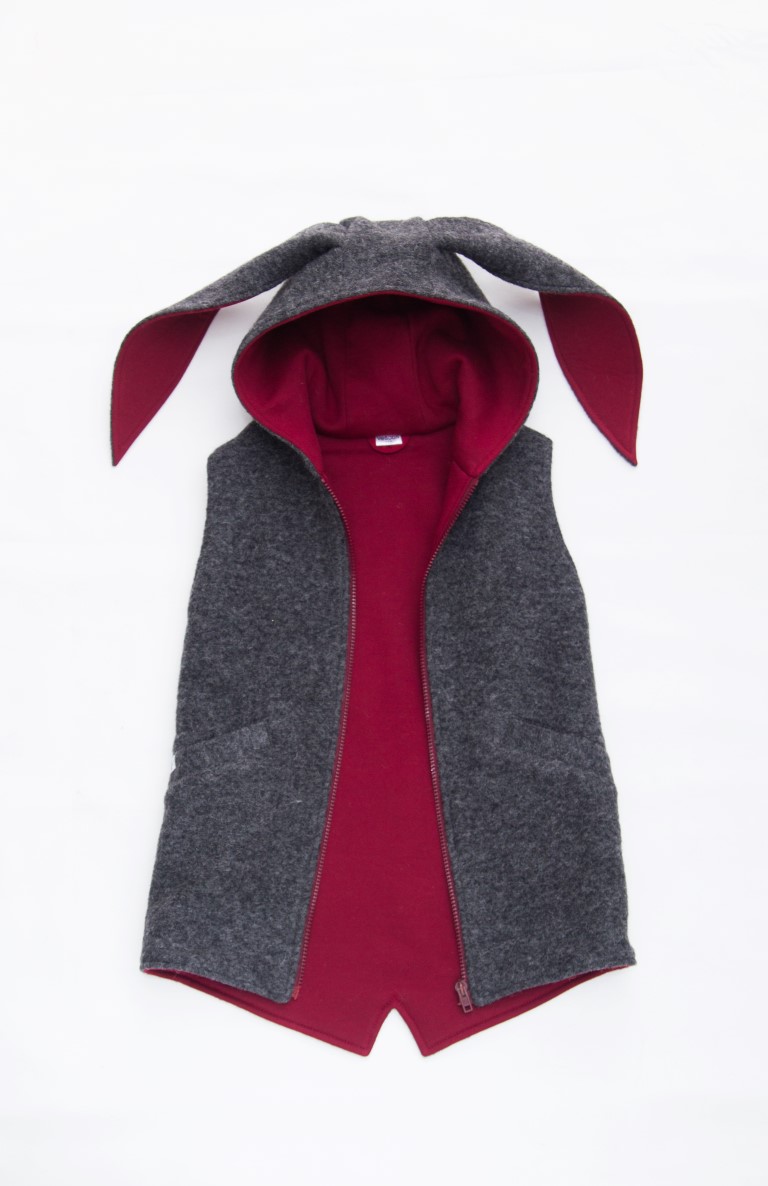 Tamsiai pilka liemenė su bordo spalvos medvilnės pamušalu