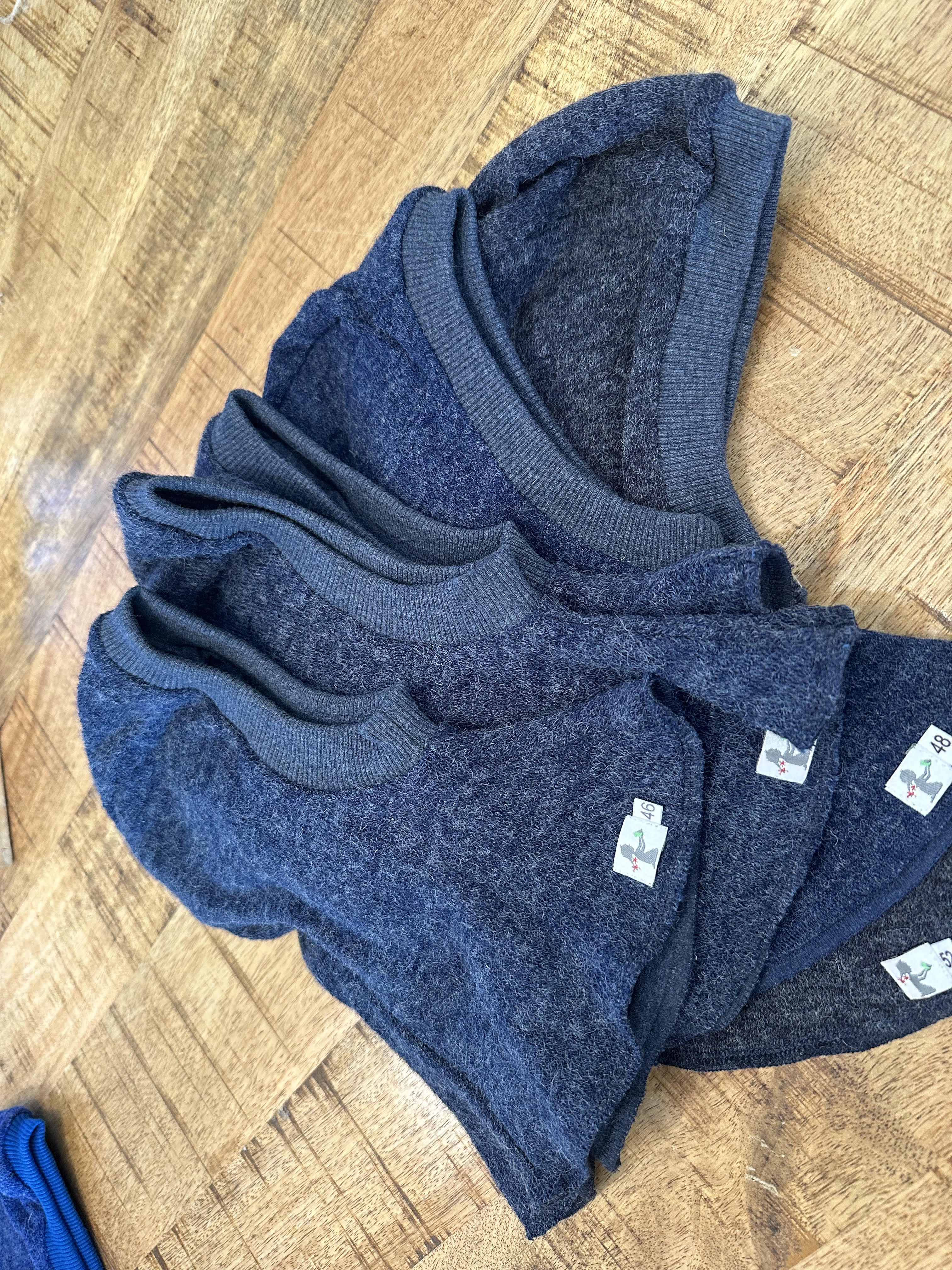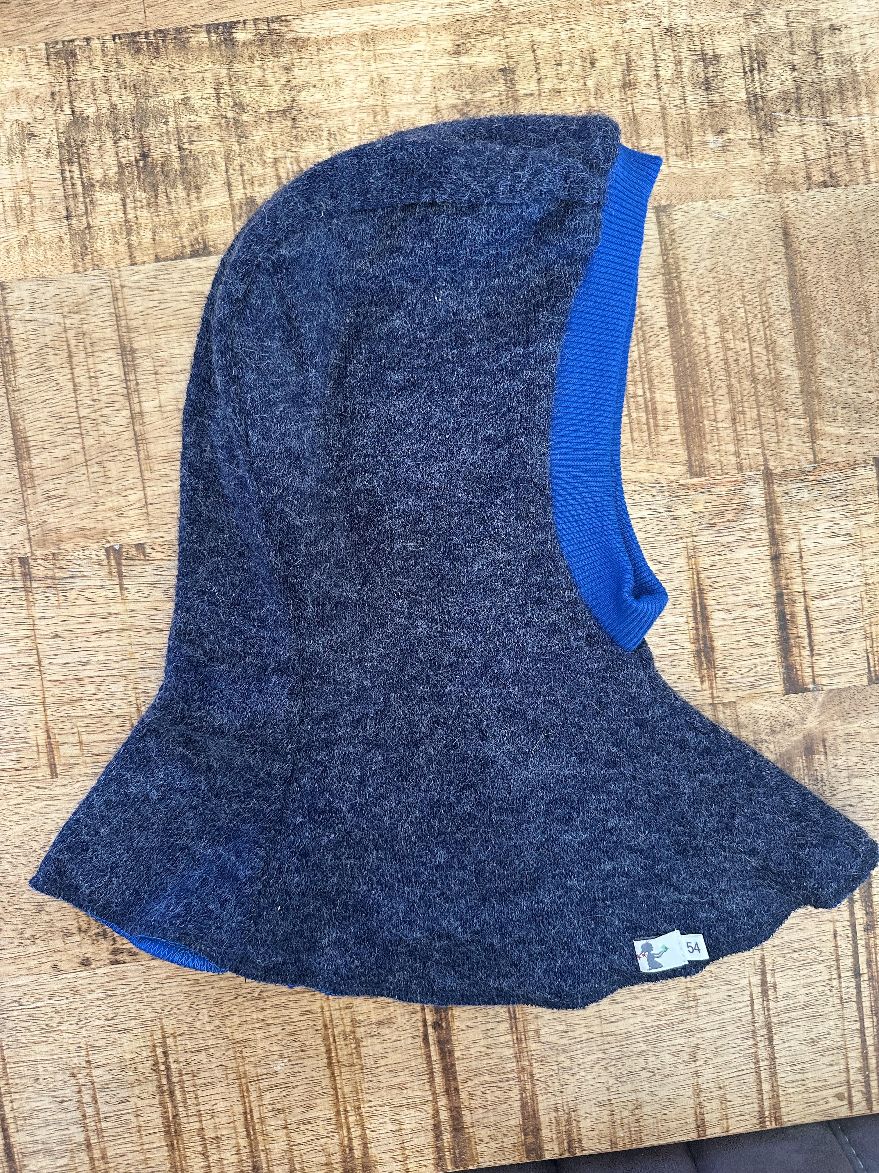 Tamsiai mėlynos vilnos, bet apvadas ryškiai mėlynas 54 dydis. (žiūrėti foto)