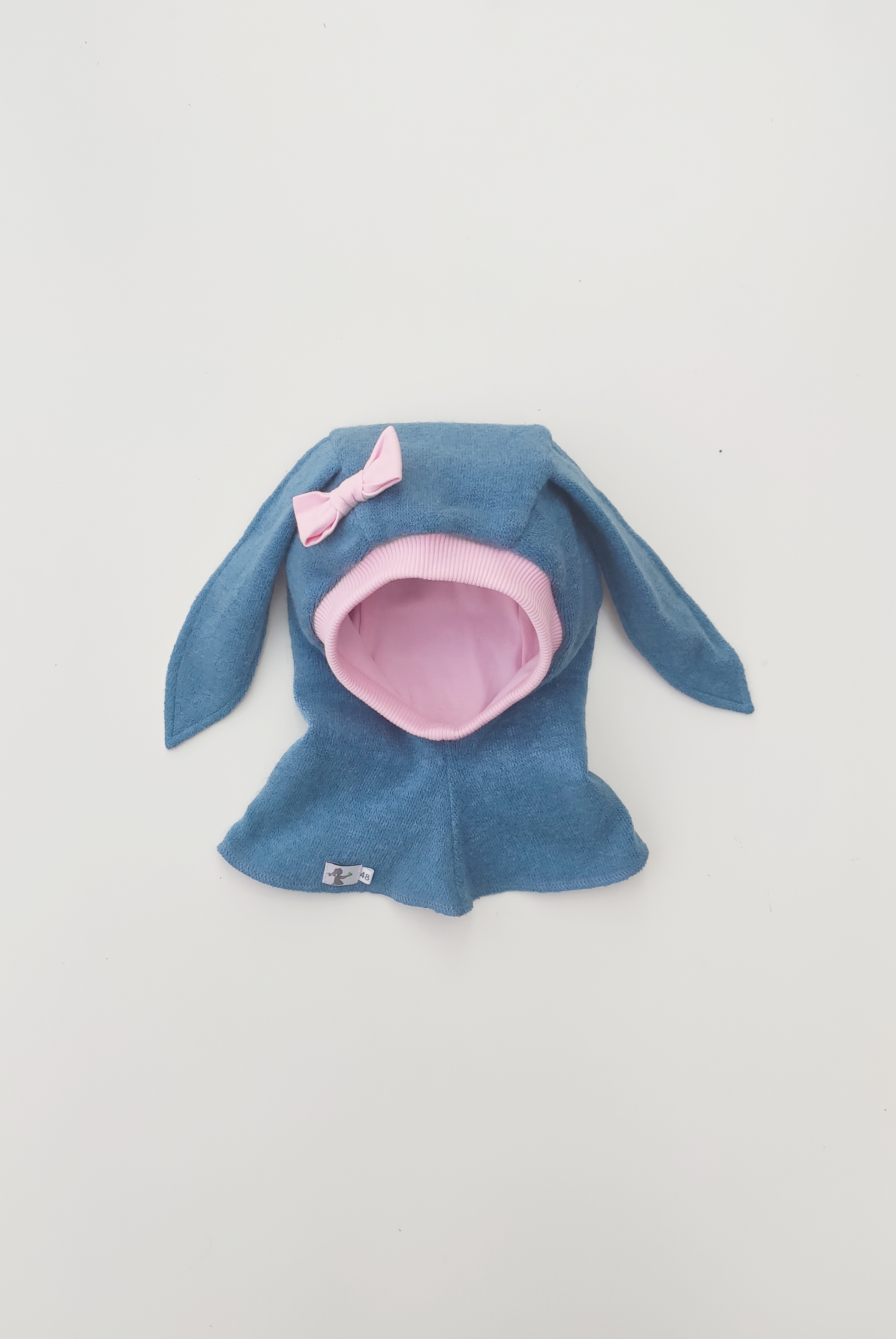 Dvigubas, su rožiniu medvilnės pamušalu, ties ausytėmis flyso pašiltinimas.